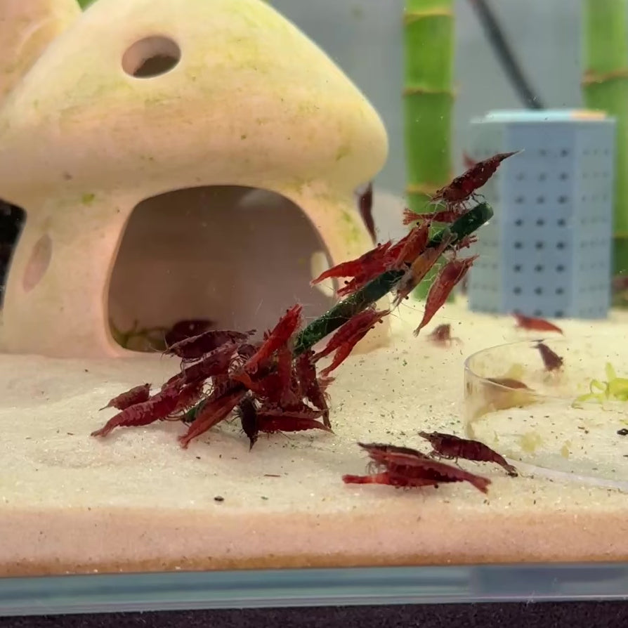 Fire Red Shrimp (Neocaridina davidi) are a striking freshwater shrimp variety prized for their bright, vivid red coloration and active behavior. Selectively bred for intensity and consistency of color, Fire Reds add bold contrast and life to planted and aquascaped aquariums.