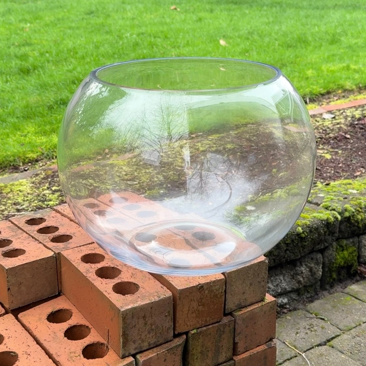 -Hand blown glass with smooth cut finish. Small flaws could be present as a result of the product's handmade nature