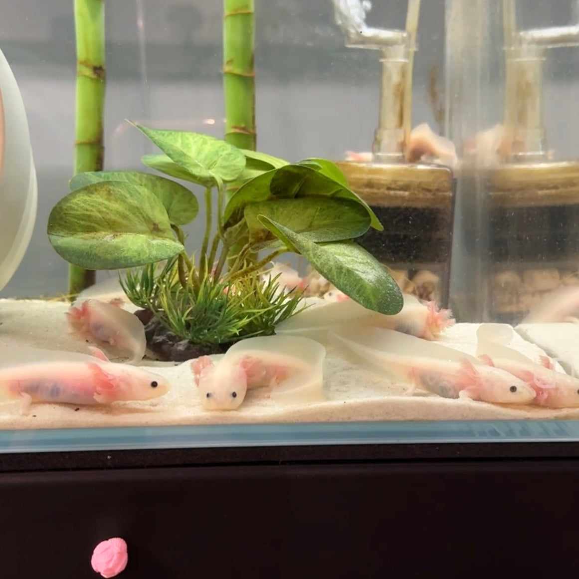 At Fish4Ever Aquatics, we prioritize the ethical and loving care of our axolotls. Our axolotls are healthy, lively, and undeniably adorable. We recommend housing a single axolotl in a tank of at least 20 gallons, with an additional 10 gallons for each additional axolotl to reduce the risk of nipping.